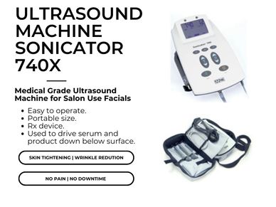 Medical grade ultrasound device! Mettler 740 Sonicator Ultrasound Machine perfect for driving down products and serum boosters after a facial. This machine is brand new hardly used excellent condition.